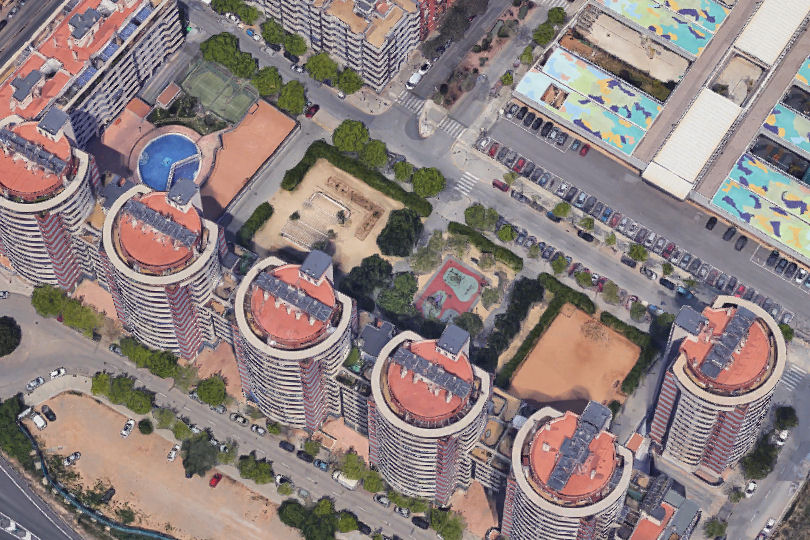 Vista aèria: (C) Google 2016. Fotos: Valero Cabaleiro, Tania
